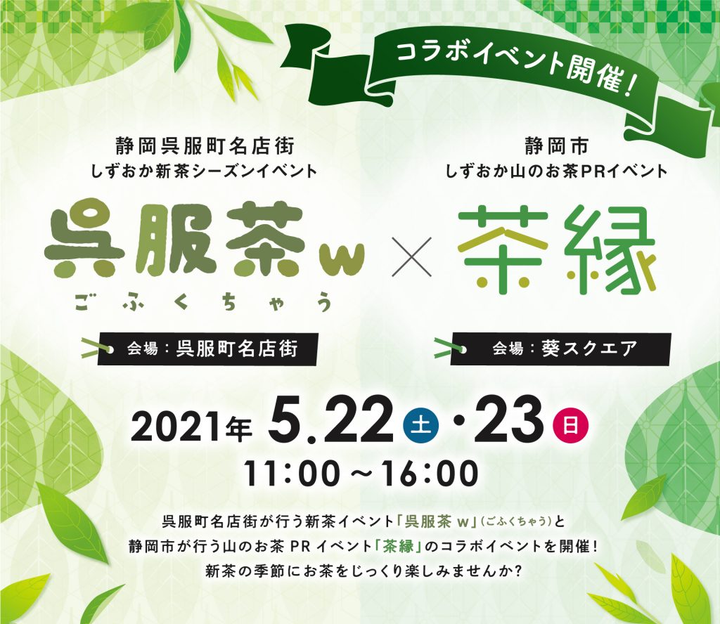 令和3年5月22日(土)、23日(日)に、呉服町名店街が行う新茶イベント「呉服茶w」と静岡市が行う山のお茶PRイベント「茶縁」のコラボイベントを開催します!!